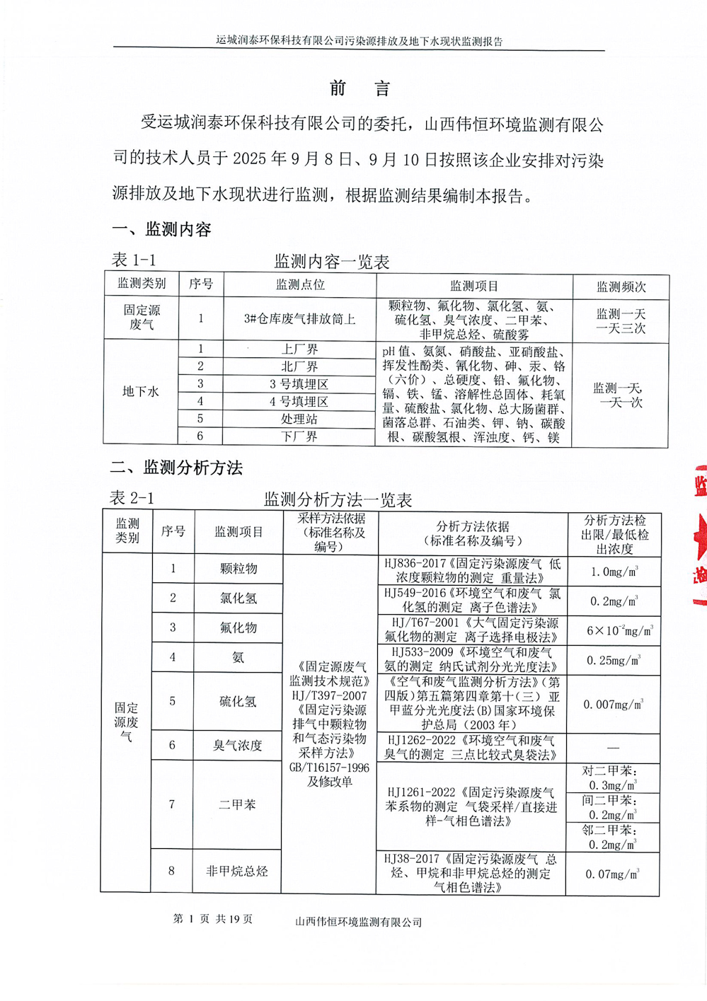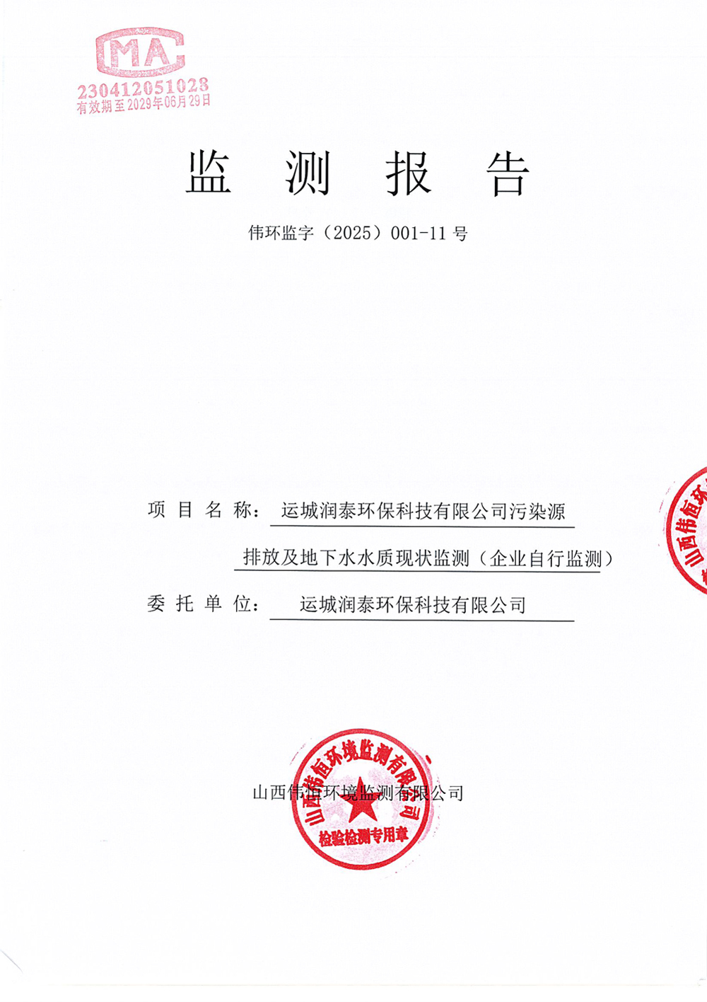 2025年潤泰環(huán)保九月份自行監(jiān)測報(bào)告