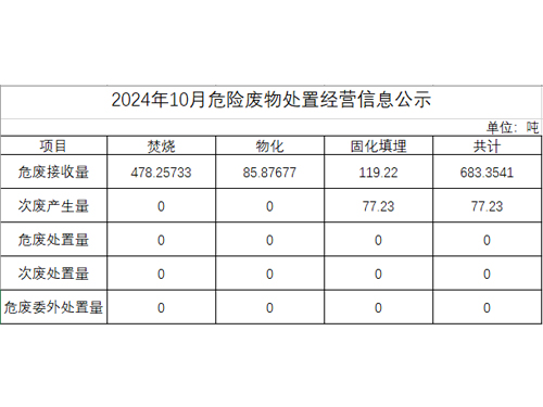 2024年10月危險廢物處置經(jīng)營信息公示