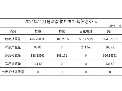 2024年11月危險廢物處置經(jīng)營信息公示