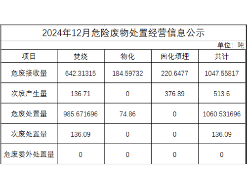 12月危險廢物處置經(jīng)營信息公示